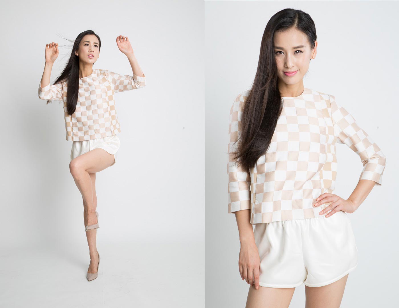 修图人后期练习素材 JPG格式 黄圣依早期棚拍高清照片 格子上衣白短裤