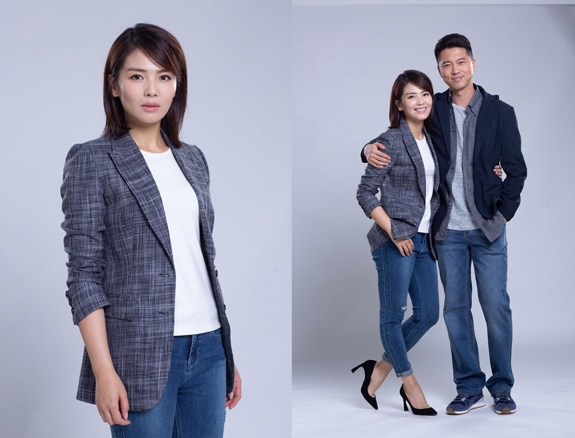 某电视剧的棚拍定妆照,全身构图,放大后细节质感略低。