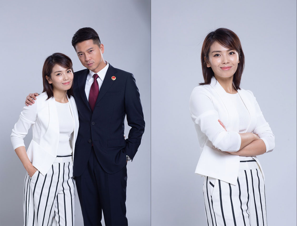 某电视剧的棚拍定妆照,全身构图,放大后细节质感略低。