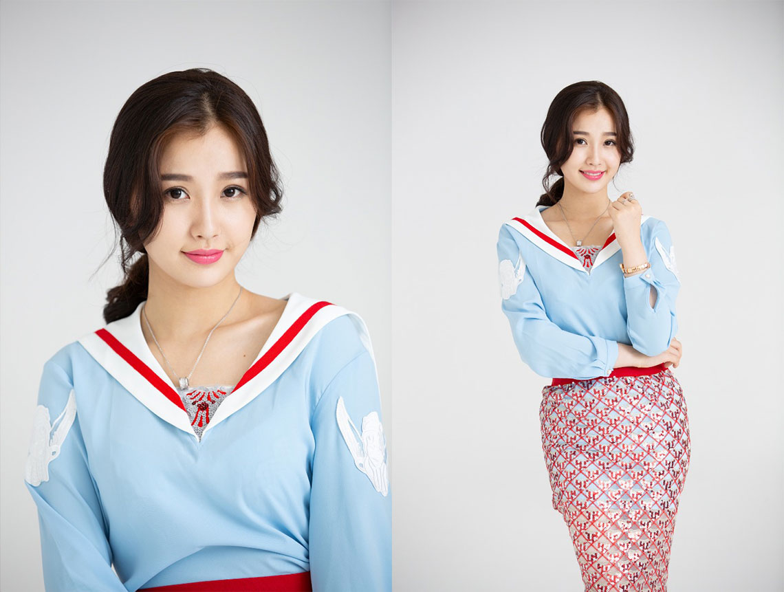 虞书欣早期棚拍人像CR2格式原图素材 蓝色长衫包臀裙