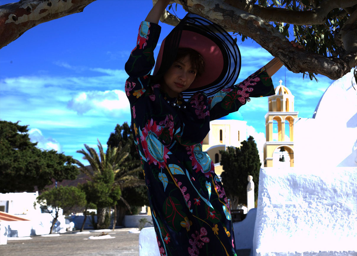 吴昕早期国外旅拍摄影原图素材 大花长裙