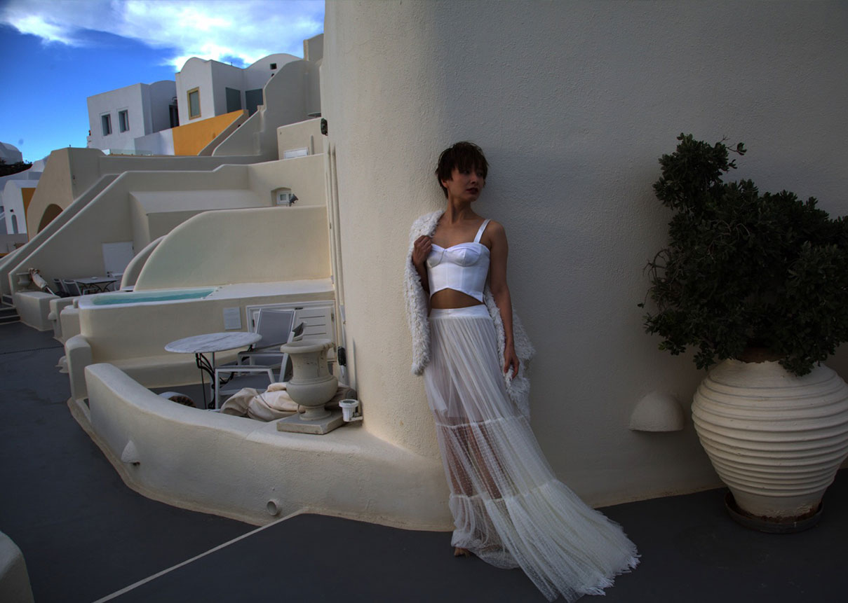 吴昕早期国外旅拍摄影原图素材 白色长纱裙 白吊带