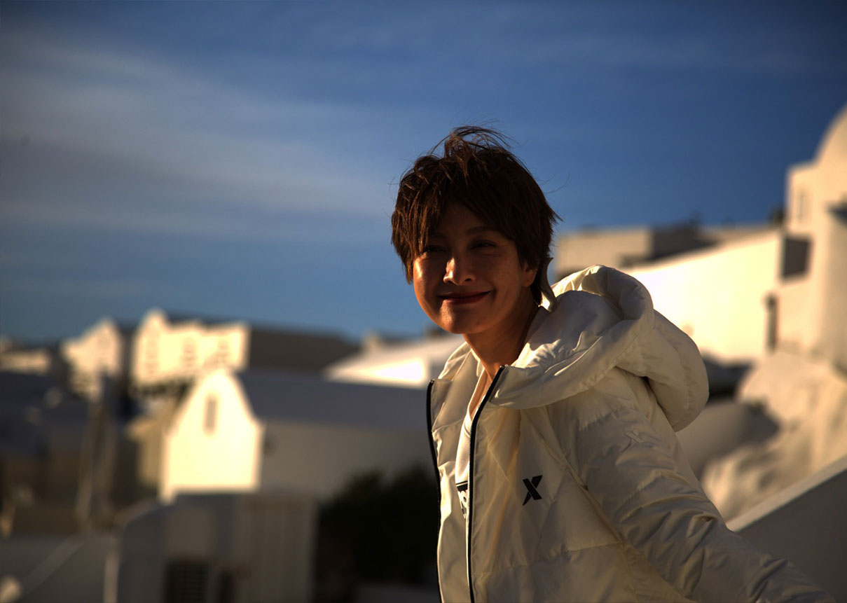 吴昕早期国外旅拍摄影原图素材 白色特步薄棉服