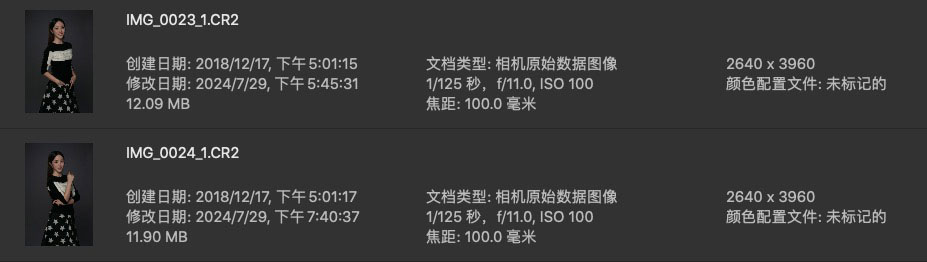 CR2+jpg格式,曝光率偏暗,分辨率偏低,感光度正常。