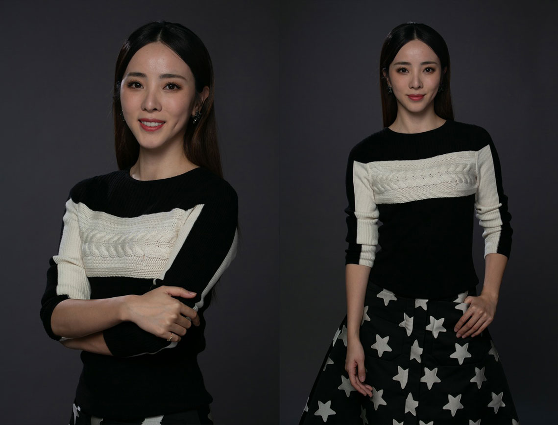 李思思早期高清棚拍宣传照 人像原图素材 黑白毛衫 星星长裙