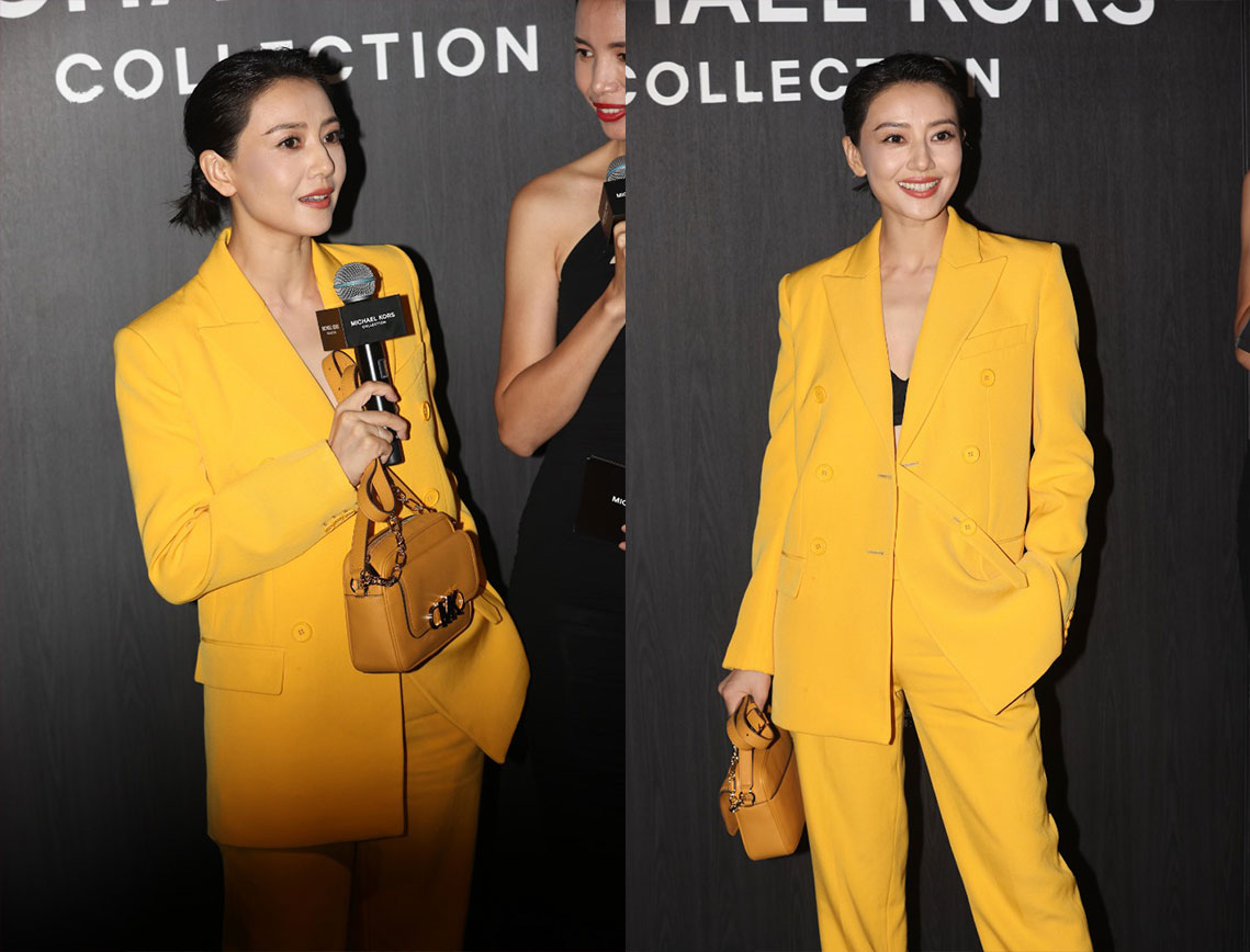 高圆圆早期活动现场照 人像原图素材 黄色西服套装