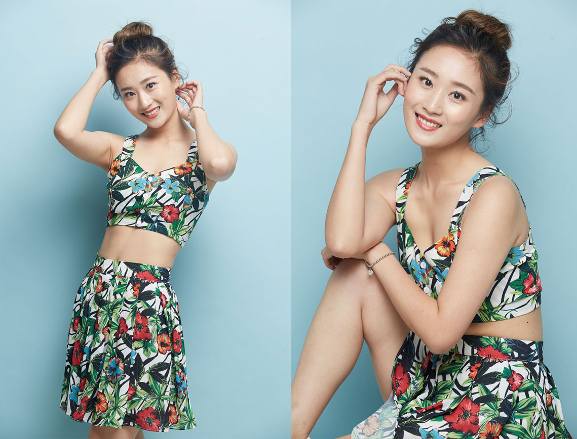 张文婷早期棚拍宣传照 人像原图素材 分体吊带花裙