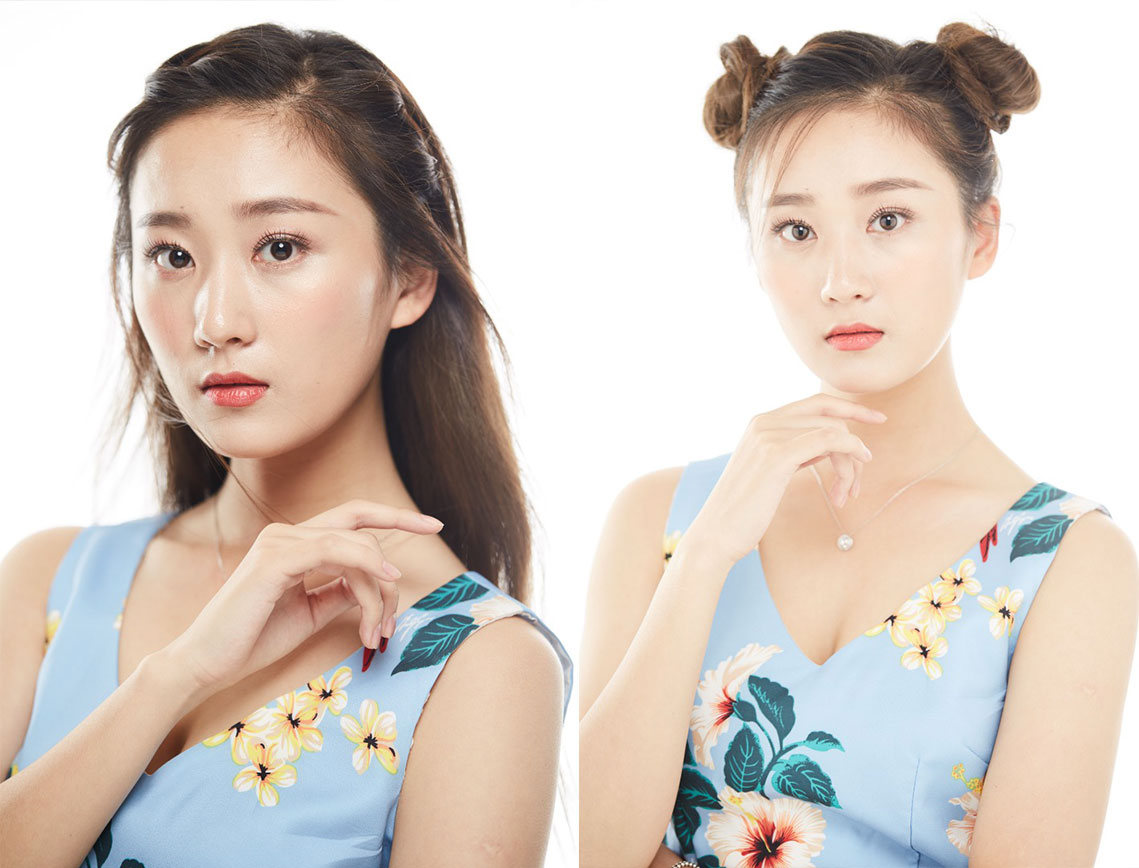 张文婷早期棚拍宣传照 人像原图素材 花鸟连衣裙