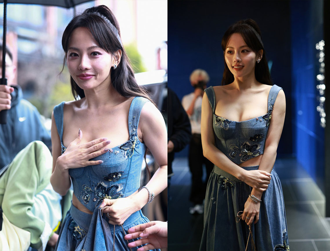 张嘉倪早期活动现场生图 人像原图素材 性感的牛仔吊带和短裙