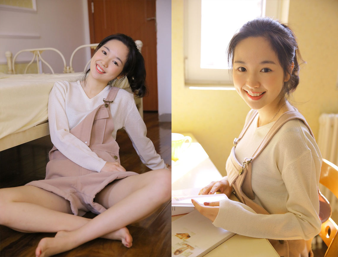 王瑞欣早期拍摄宣传照 人像原图素材 吊带短裤可爱装扮
