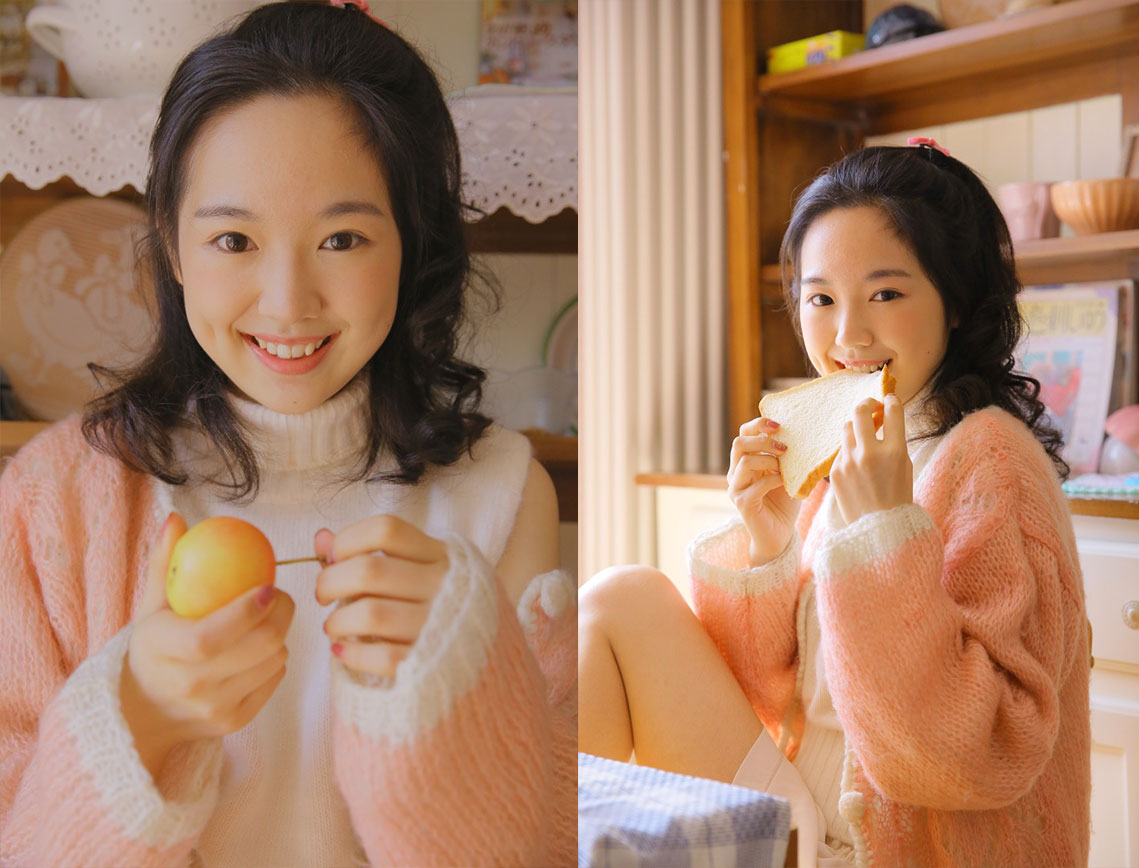 王瑞欣早期拍摄宣传照 人像原图素材 粉红毛衣可爱装扮