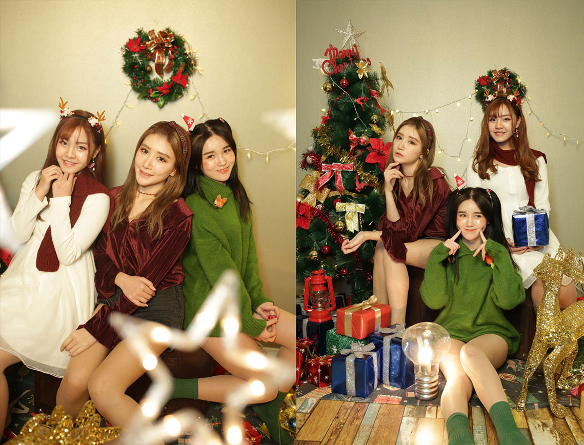101三位少女早期棚拍宣传照 圣诞主题拍摄原图