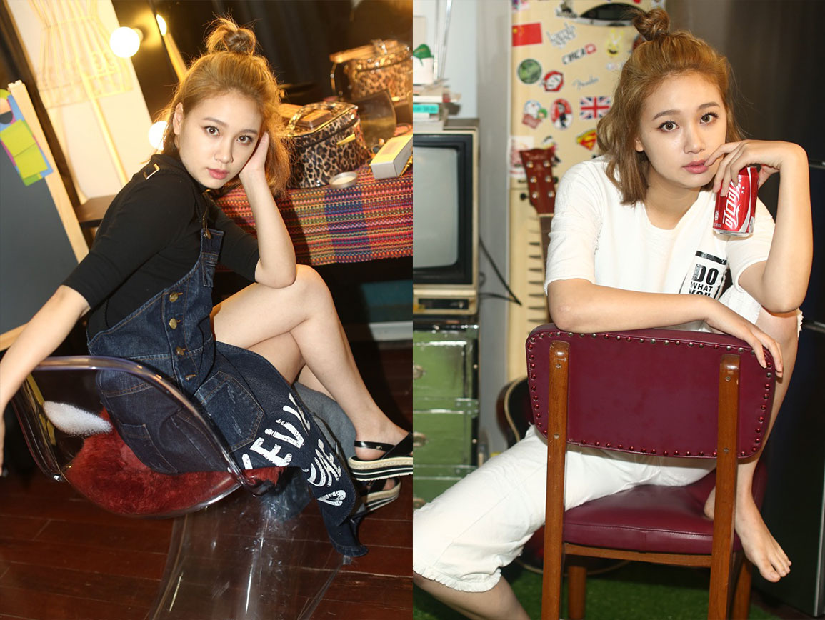 程砚秋早期居家写真照原片,一套牛仔背带,一套白短裤白短袖。