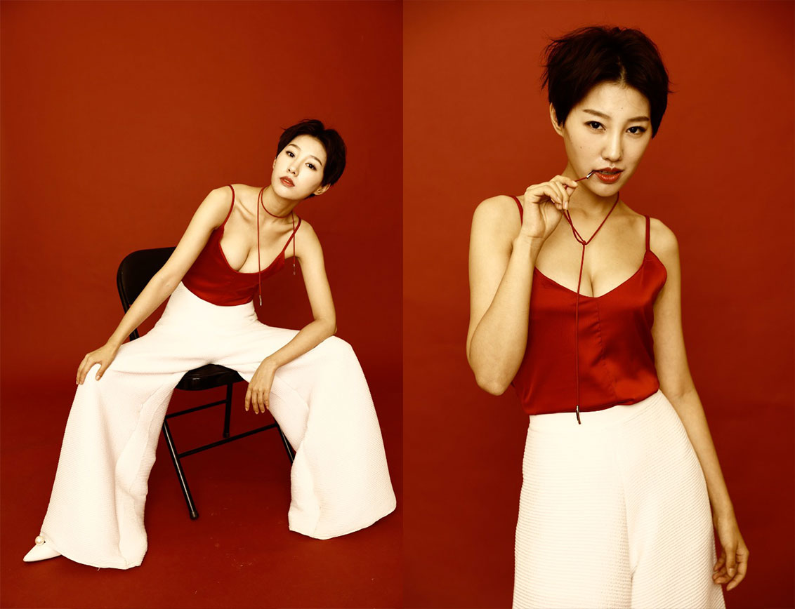 何乙轩早期外景拍摄原图素材 红色吊带 白长裤