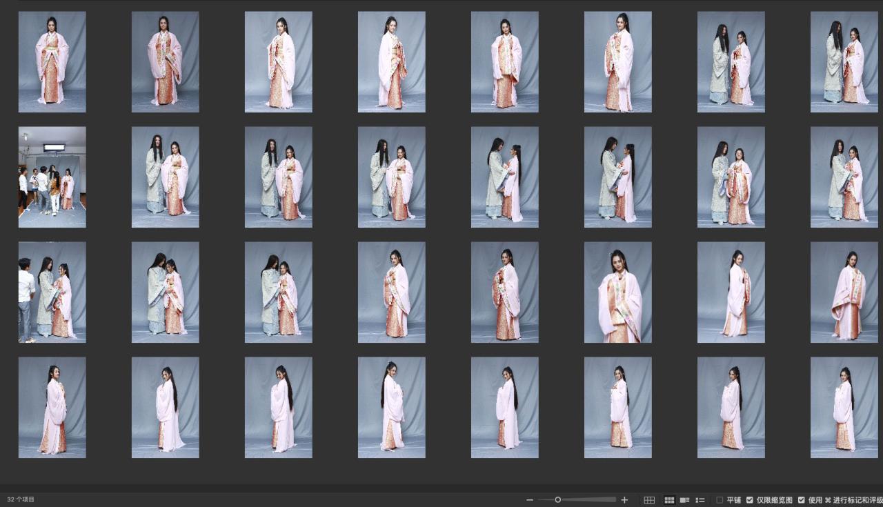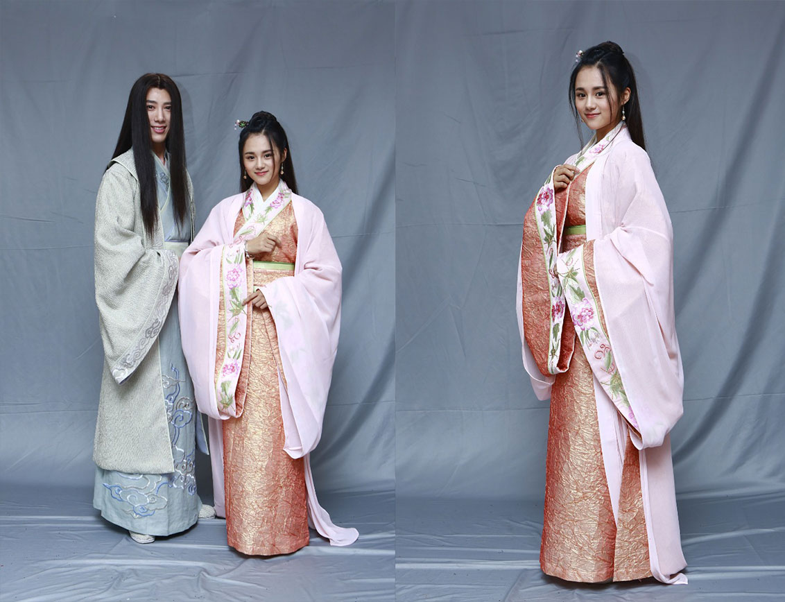 一组古风装扮,有几张合影,全部是全身照,放大后细节缺失。
