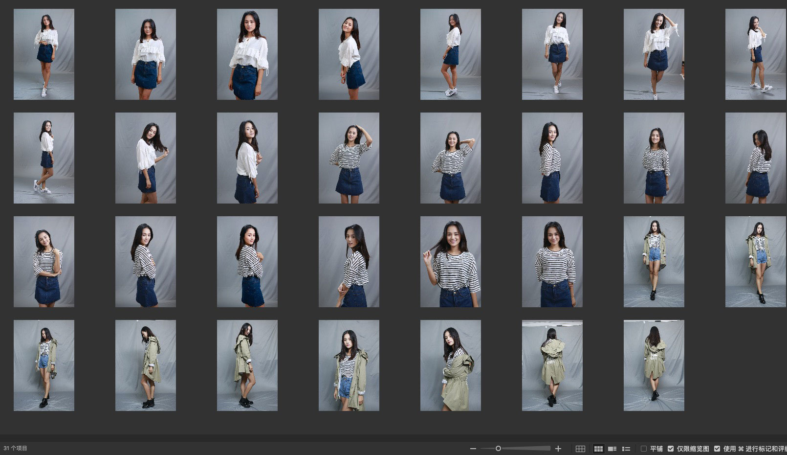 这一组包含两套服装搭配,半身构图放大后质感保留的还可以。