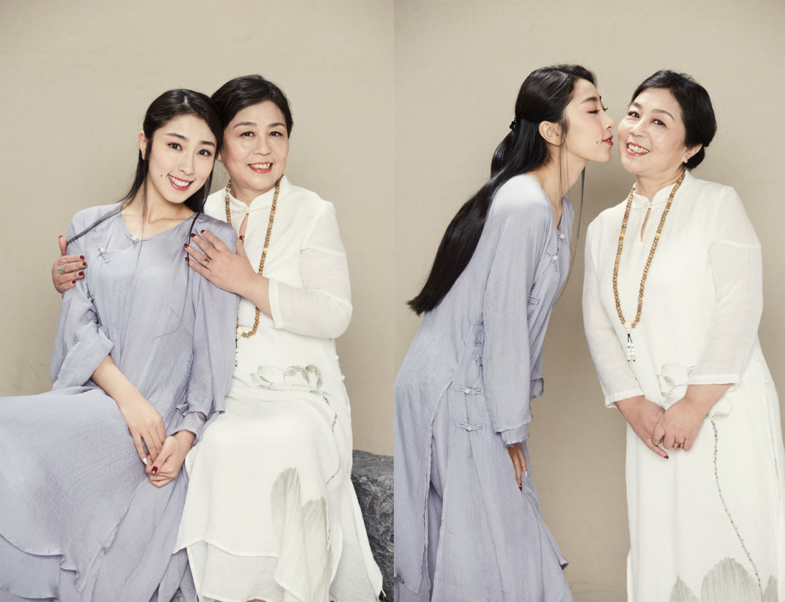张小婉早期棚内拍摄宣传照原图素材 母女温馨合影照