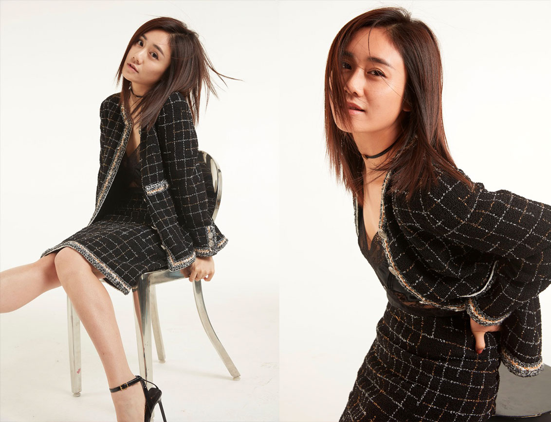 刘芸早期棚内拍摄宣传照原图素材 分体式上衣和短裙套装