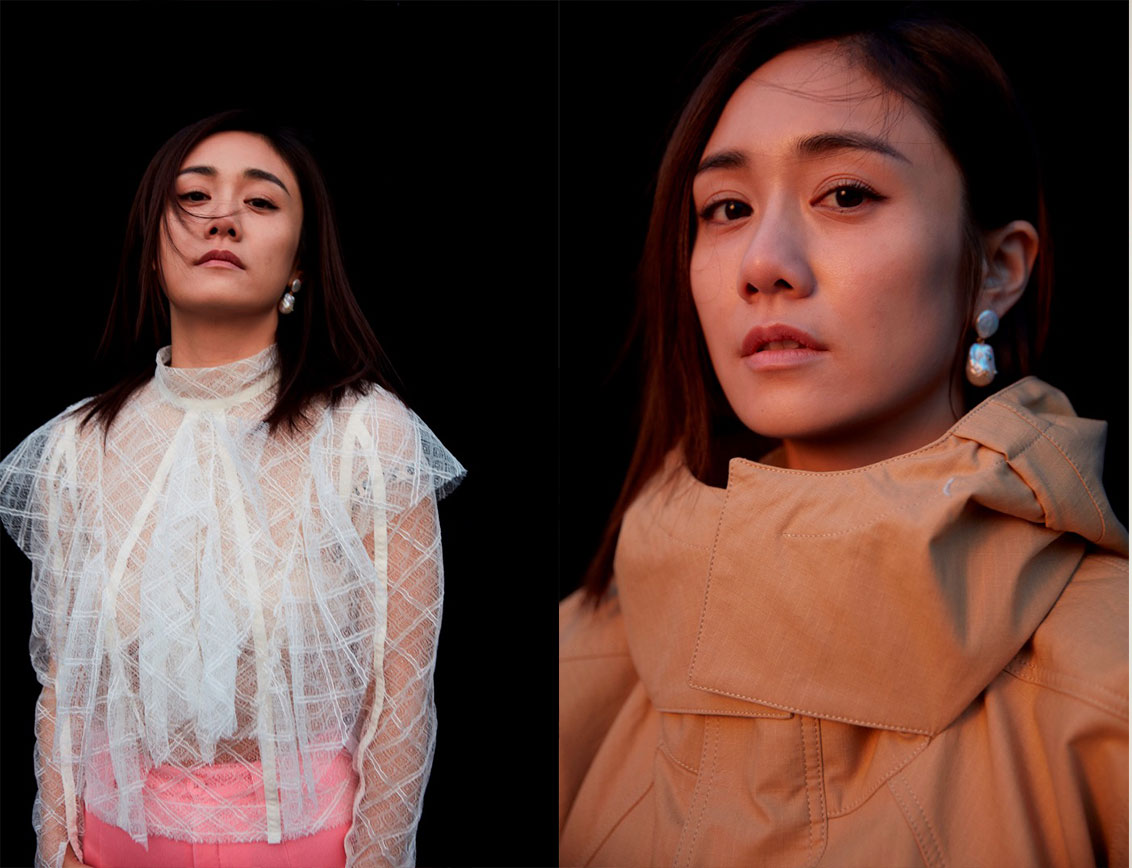 刘芸早期棚内拍摄宣传照原图素材 透明薄纱上衣配粉色长裤