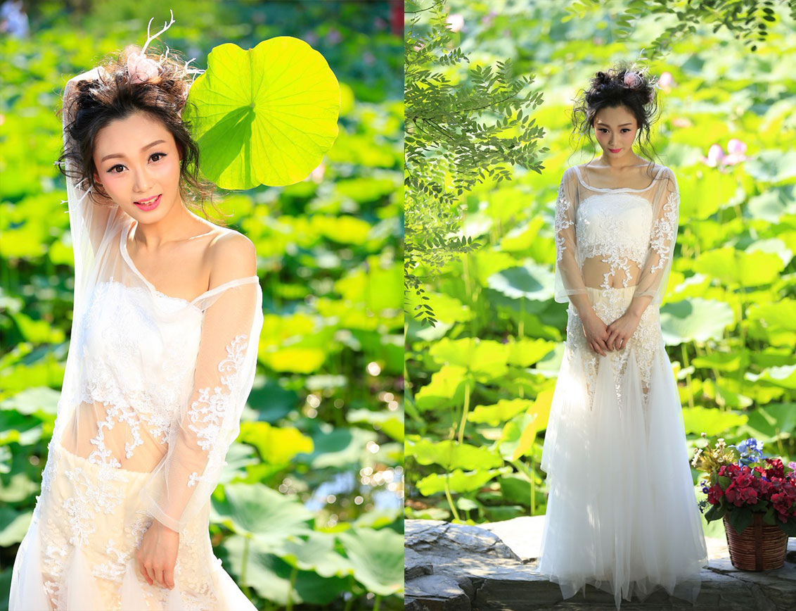 人像原图素材 玩车女神很早期的外景拍摄 白色纱裙