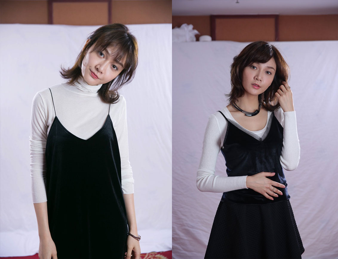 潘之琳早期室内服装摄影原图素材 两套黑色吊带装