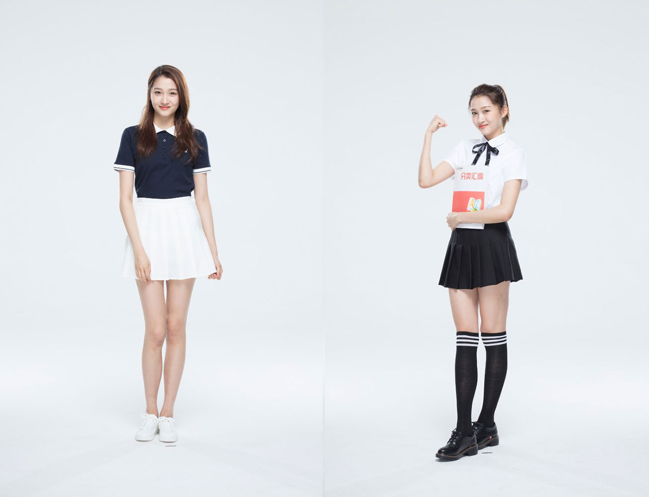 关晓彤早期棚拍无修调tif原图 JK短裙装。