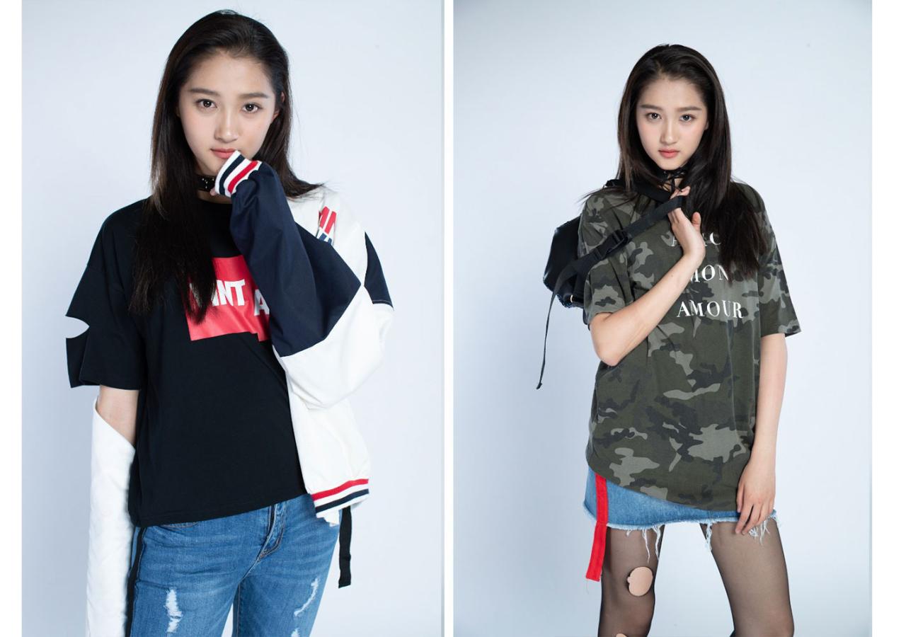 关晓彤早期棚拍无修调CR2原图 迷彩短袖配短裙 长裤配黑短袖