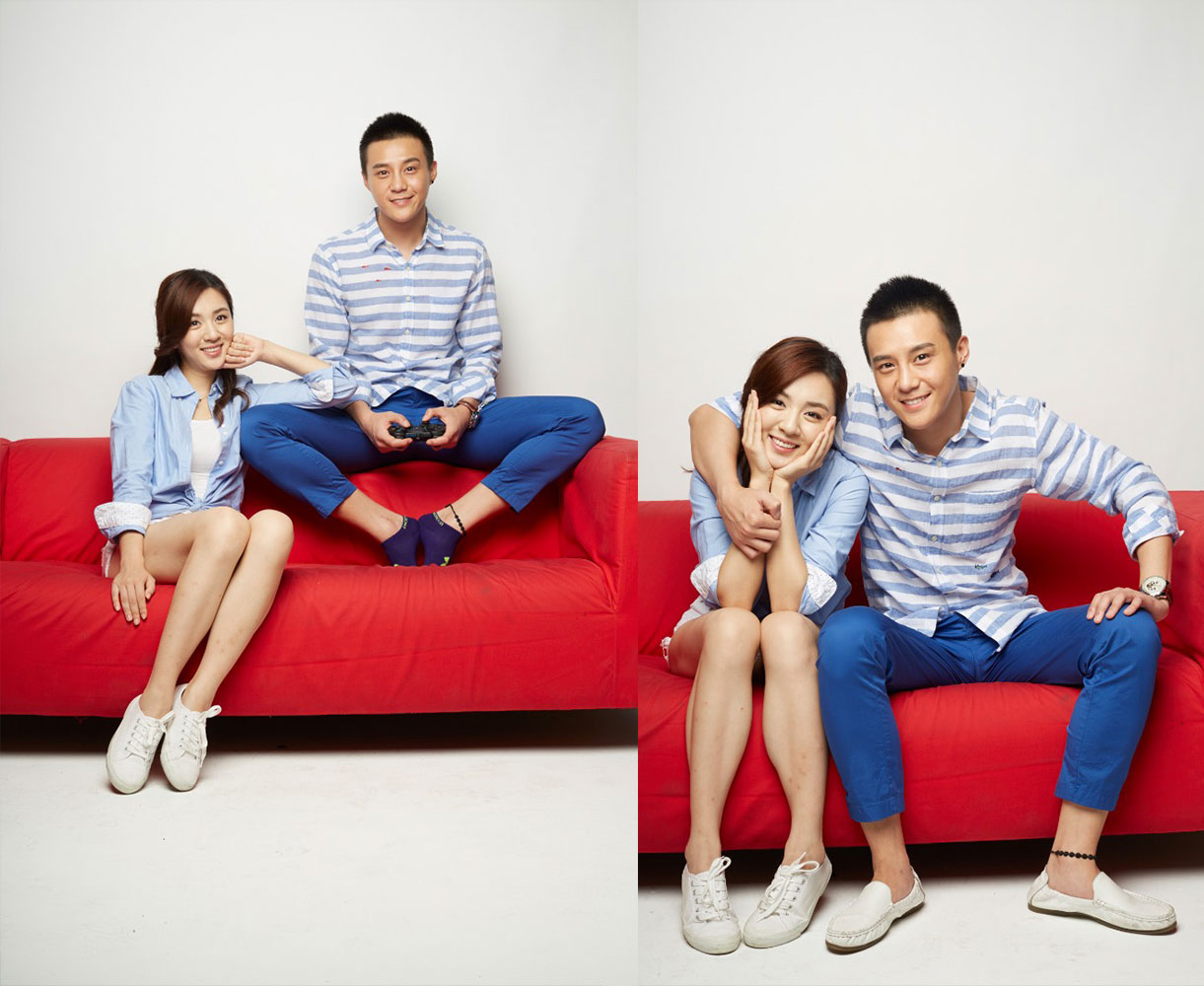 人像修图练习素材 王晓晨王宫良早期棚拍合影宣传照 红沙发