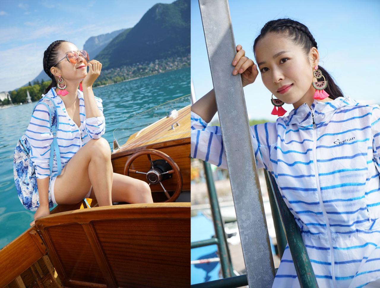 人像修图练习素材 江一燕外景服装拍摄素材 蓝色条纹外套