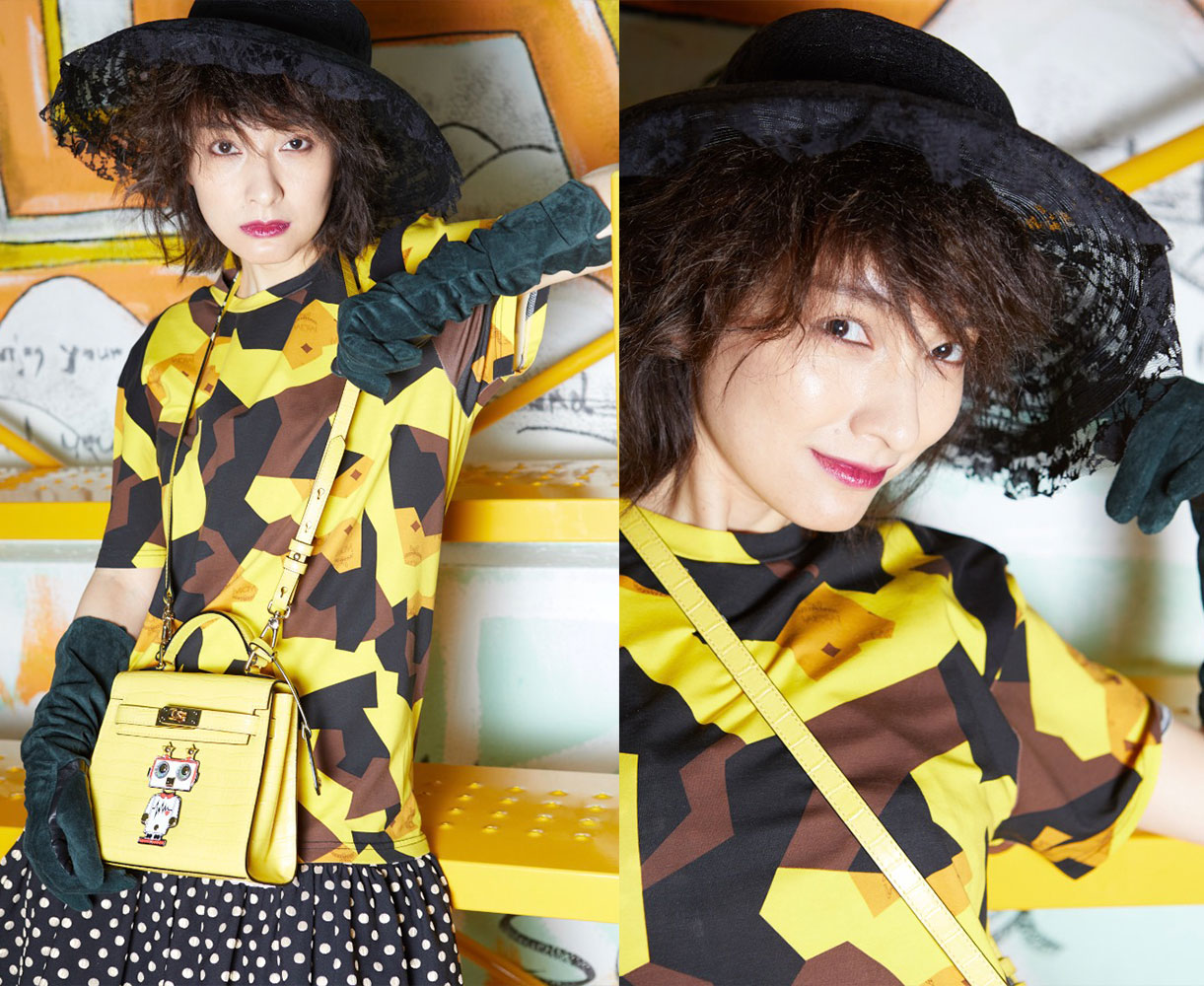 本组属于同色系配色,黄色上衣配黄色背景很是抢眼。