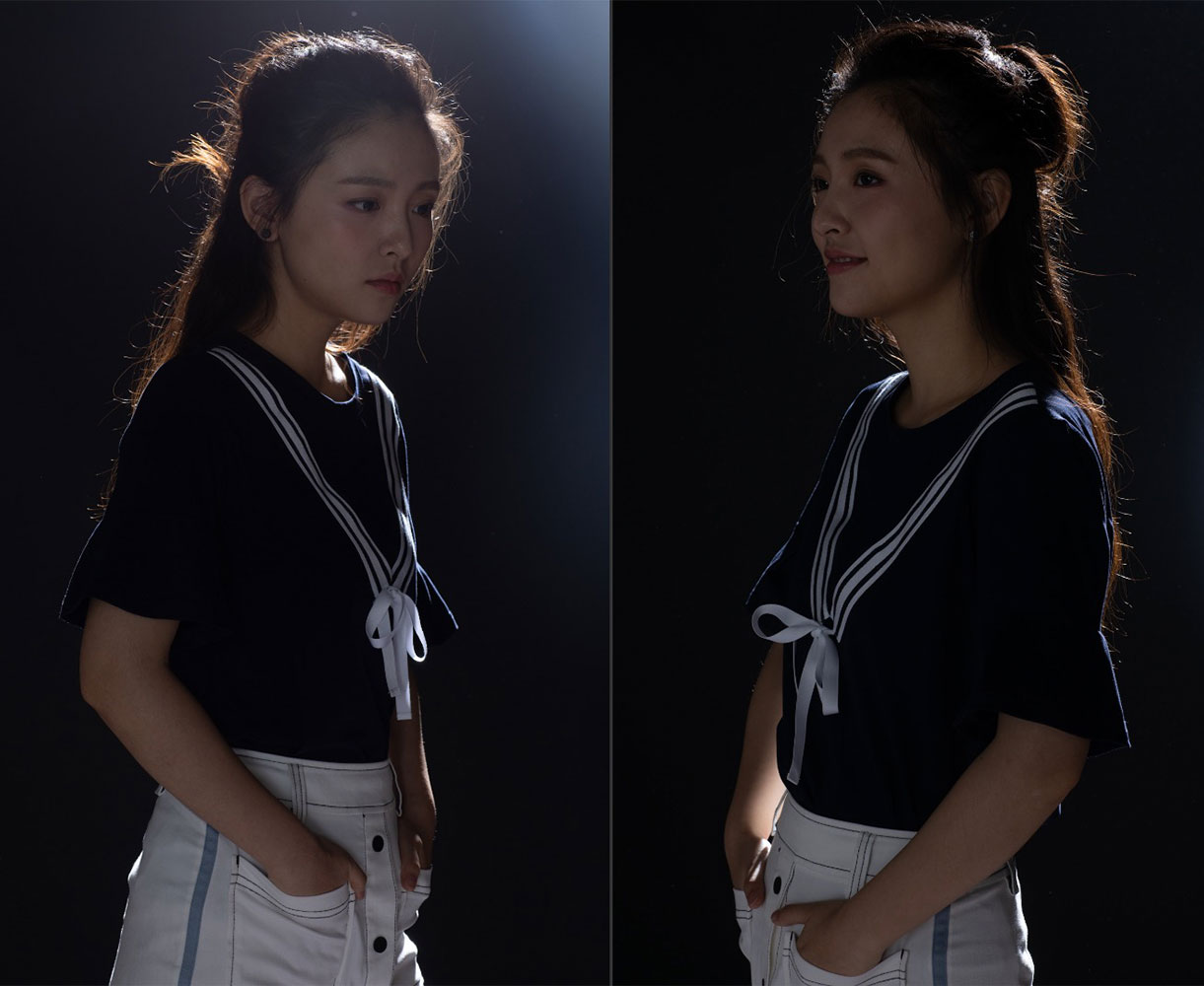 暗调逆光拍摄,半身侧脸构图,比较单调。