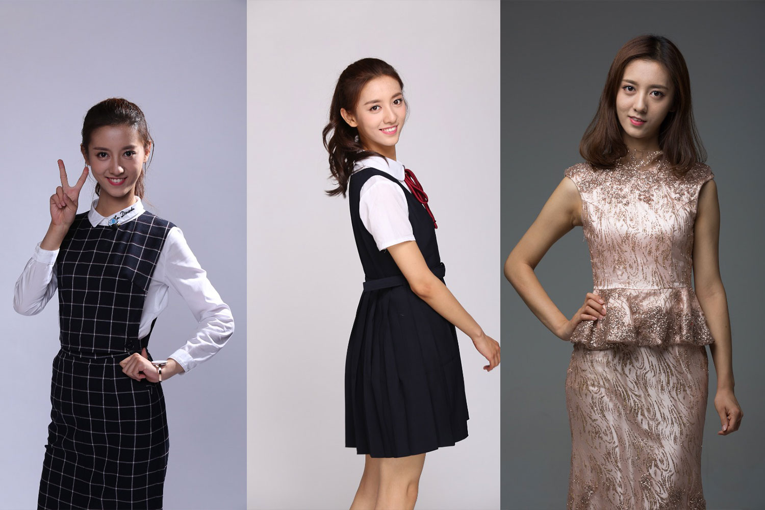 三组棚拍形象宣传找,构图比较全面,从全身到特写镜头都包含。