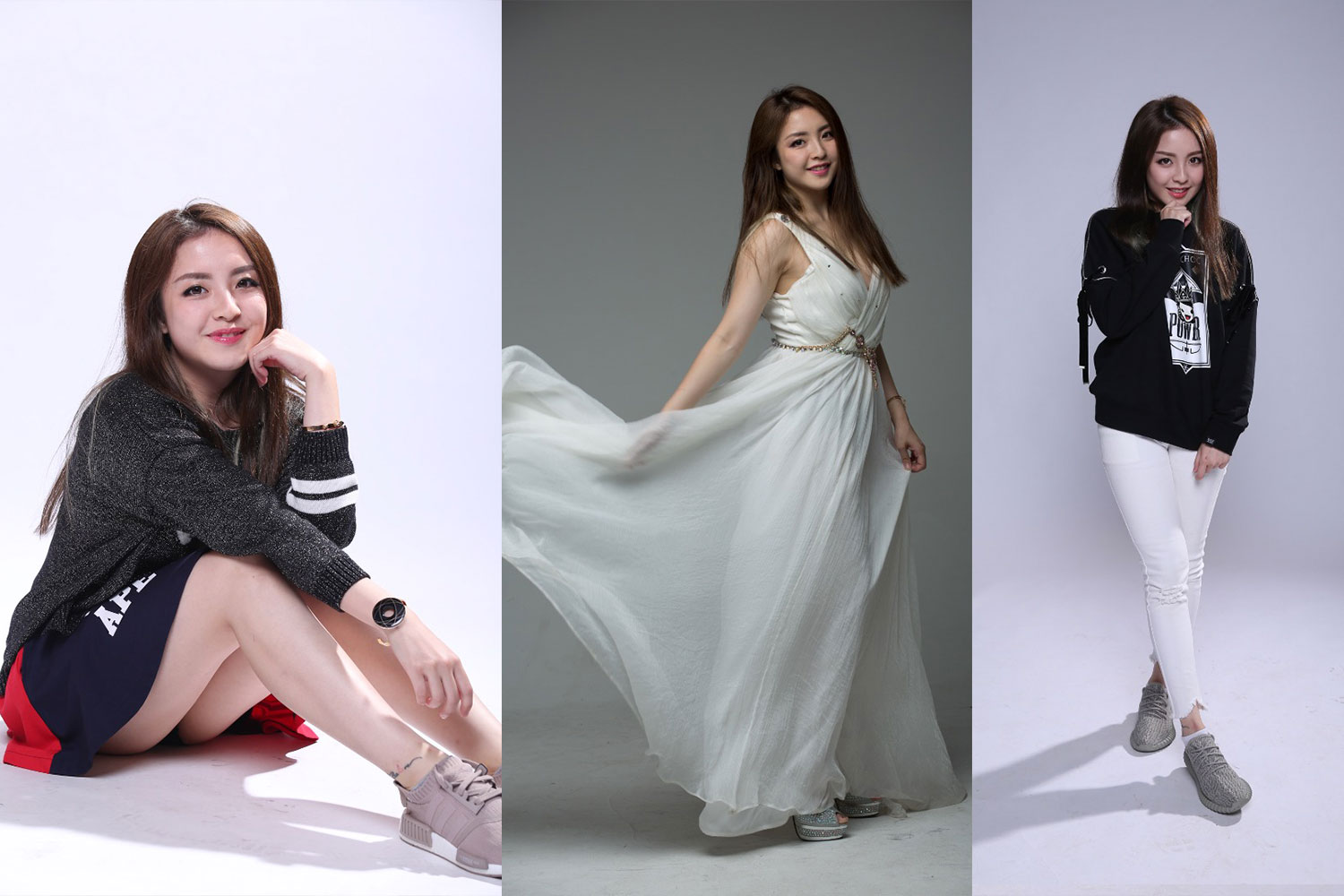 三组服装造型,期中晚礼裙的比较出片,白裤子的构图稍差,红黑短裙尚可。