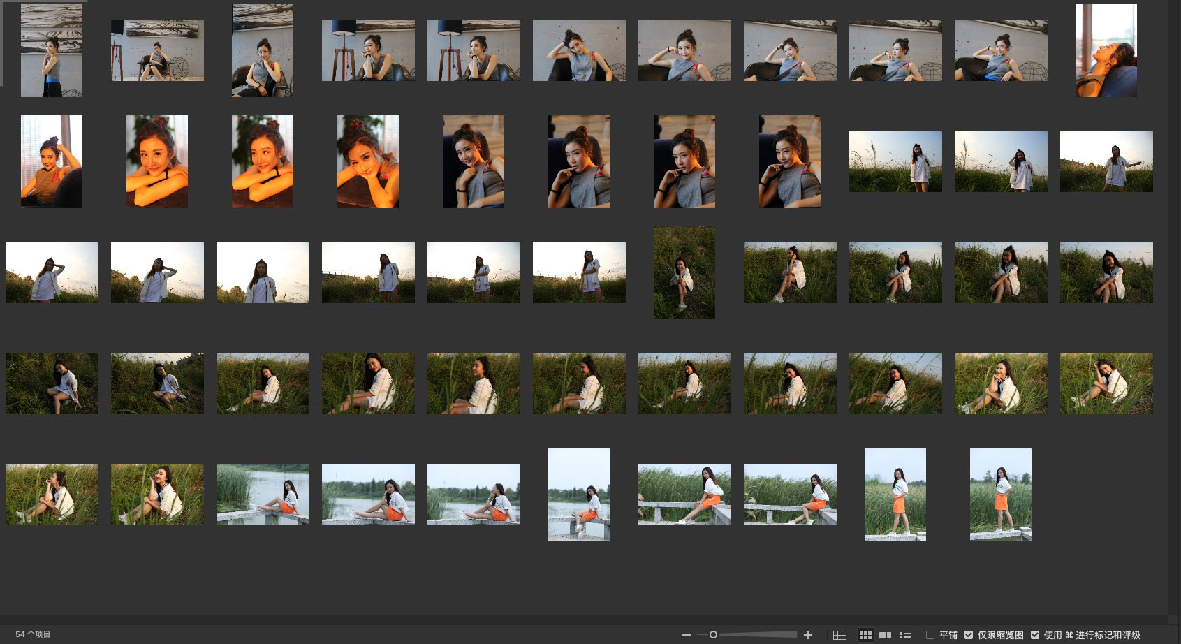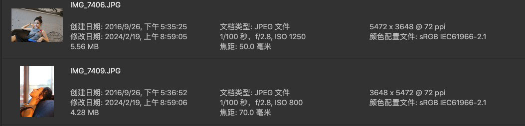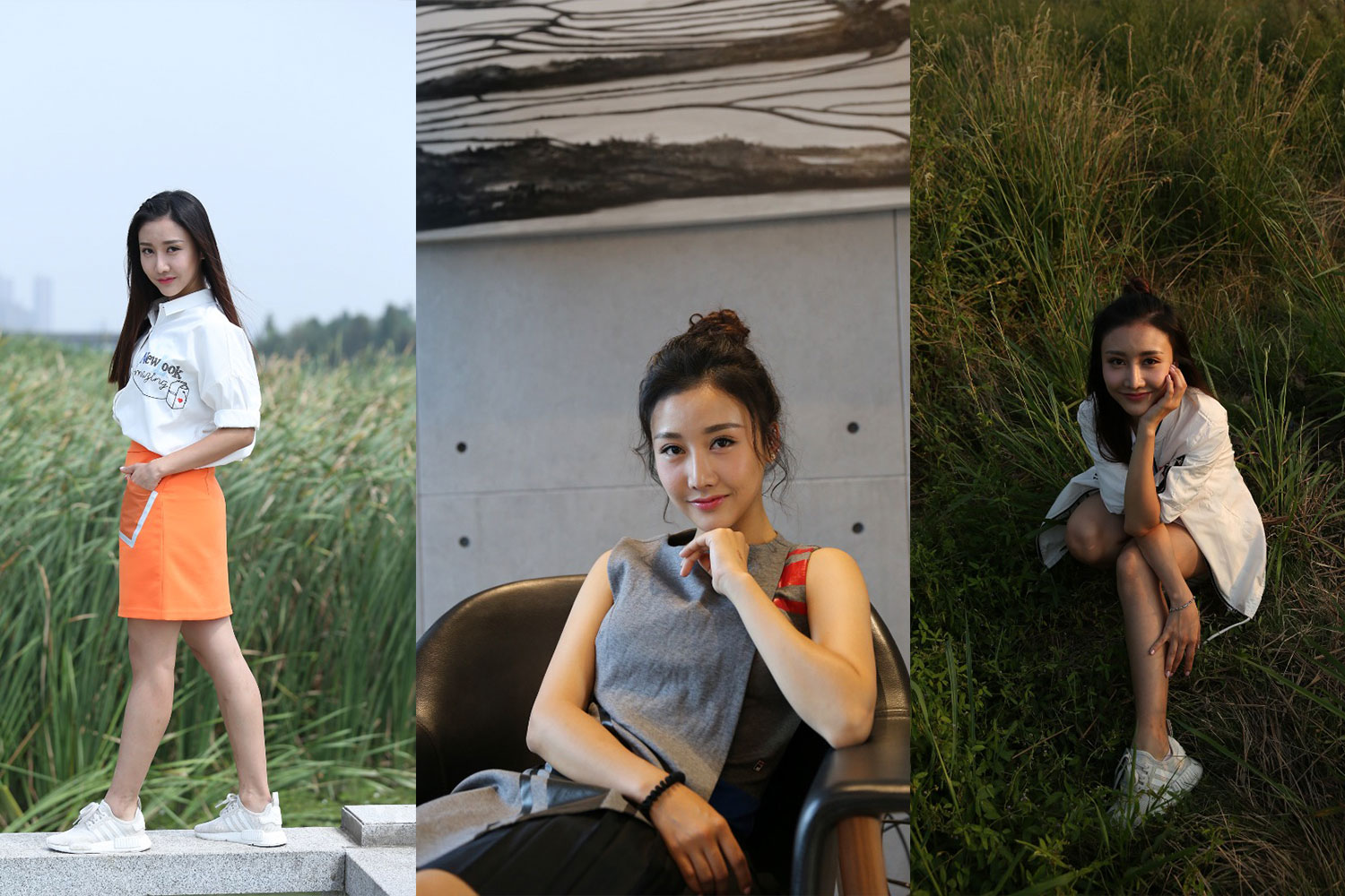 两组外景照和一组室内拍摄,外景白色外套曝光不足,提亮后略有噪点。