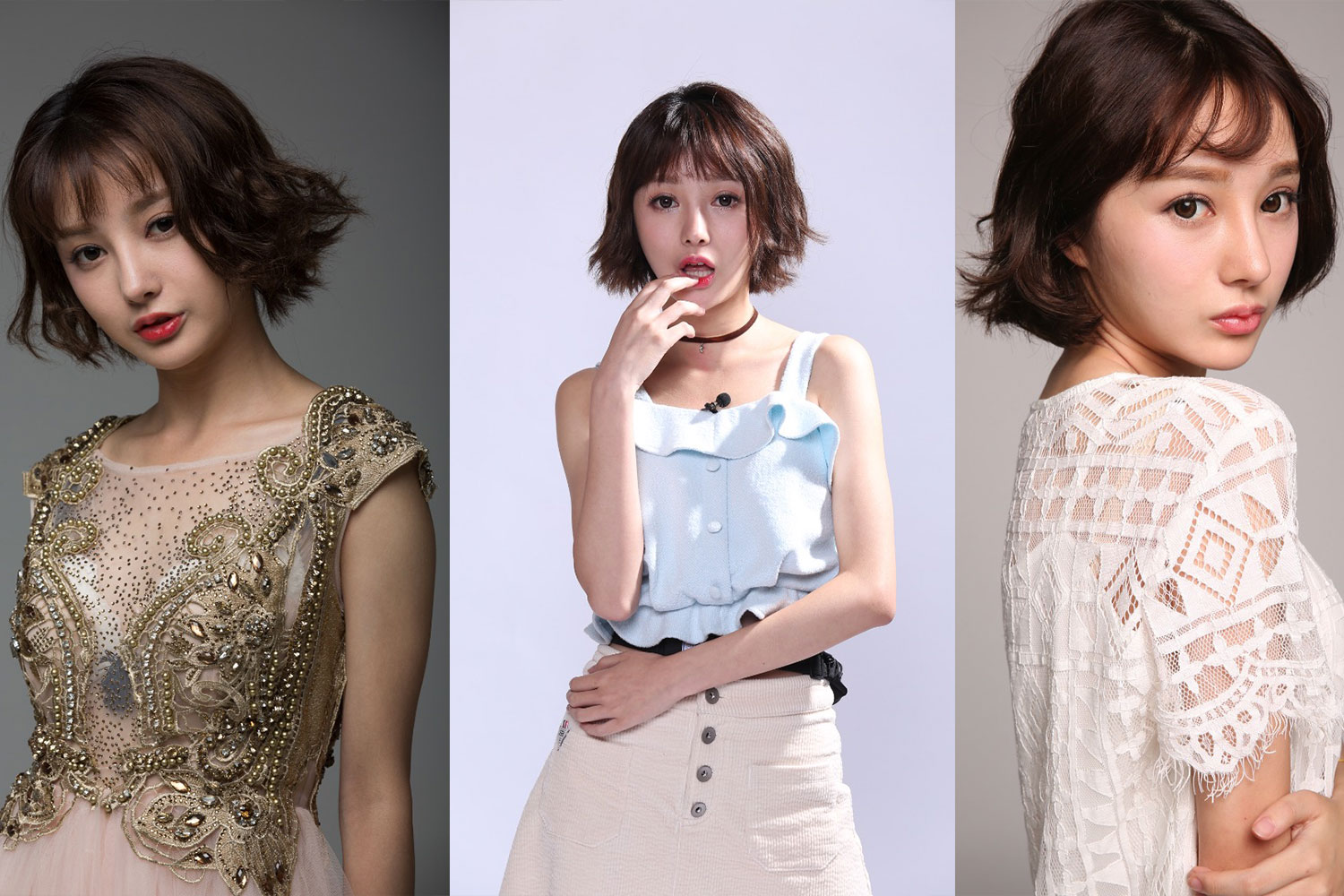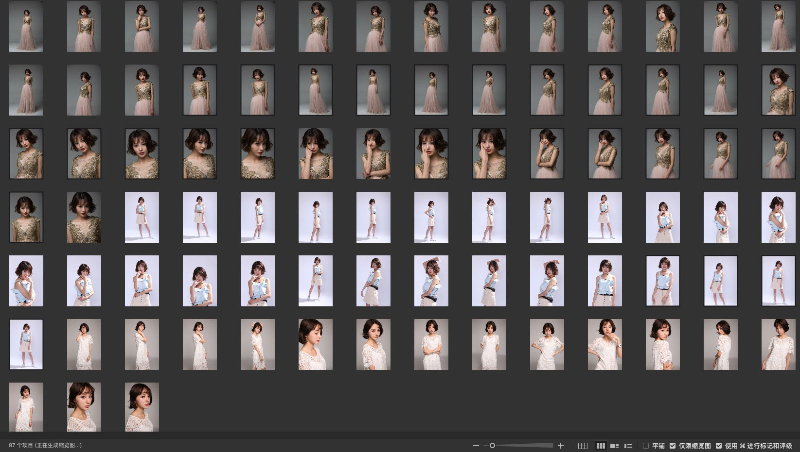 三组棚拍,构图比较丰富,全身半身大半身皆有,放大后质感 OK,特写细节优秀。