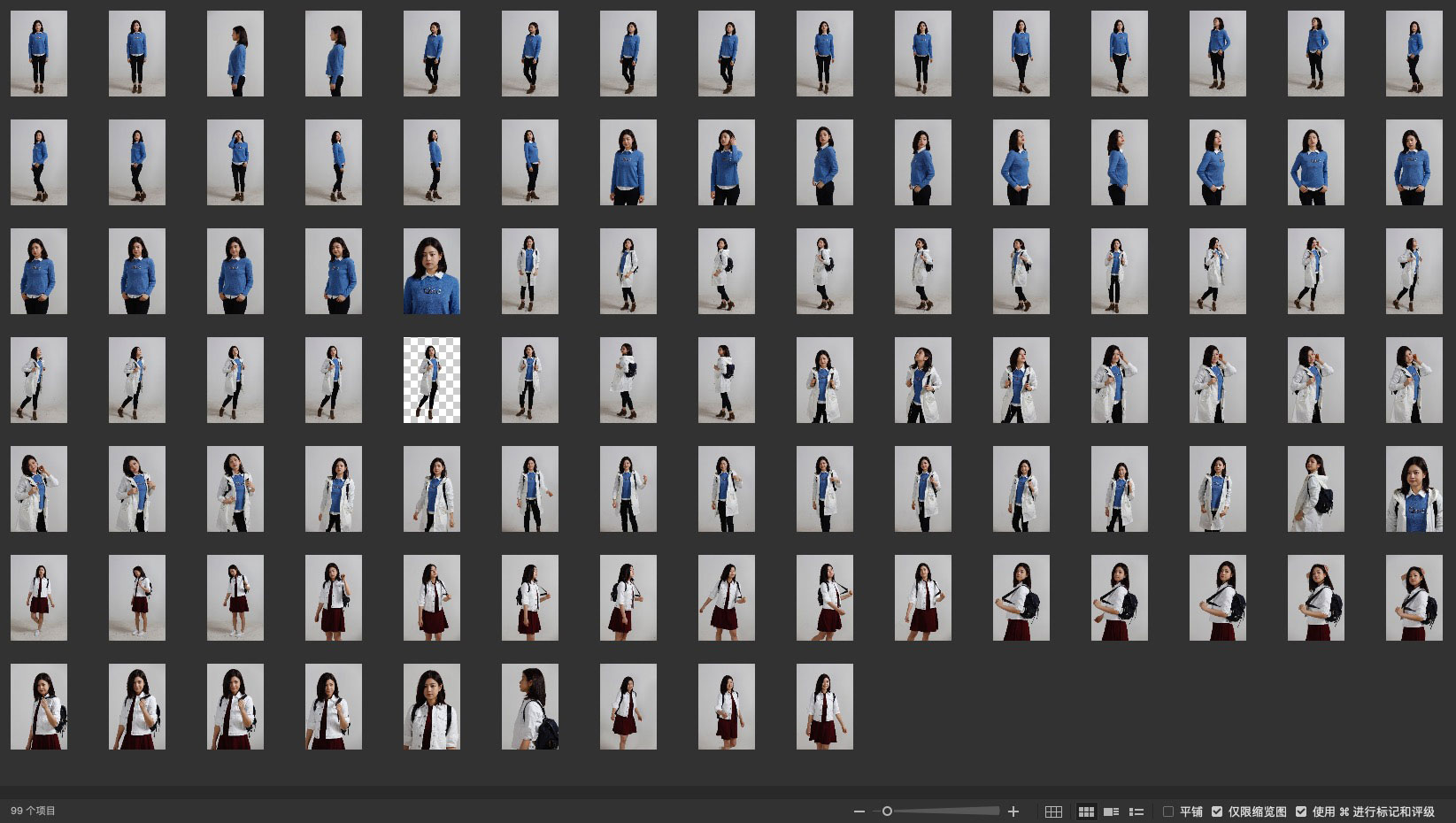 本组包含两套服装,全身和半身构图,放大后细节不如 cr2格式,不过也算可以用。