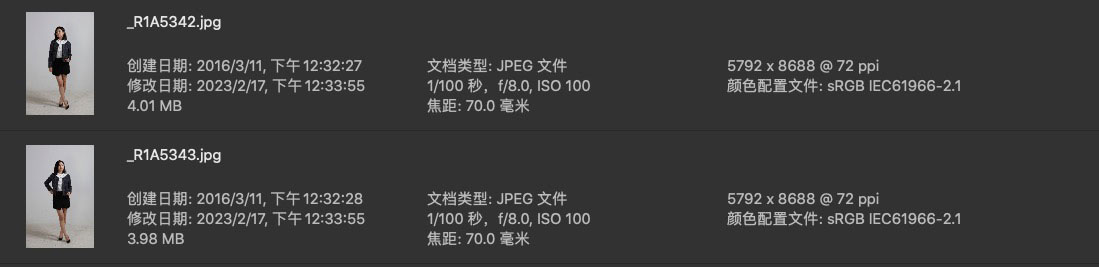 本组包含三套服装,全身和半身构图,放大后细节不如 cr2格式,不过也算可以用。