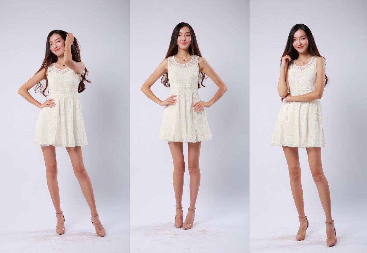 周怡早期棚拍白色花纹连衣裙定妆照高清原片,JPG格式,分辨率正常,感光度正常。