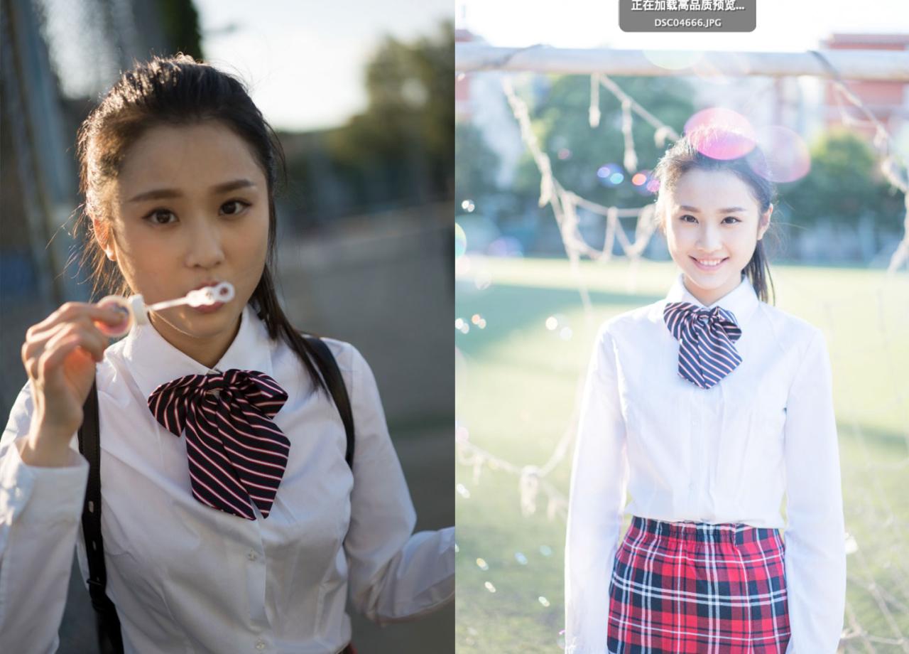像这种外景图片光线比较柔和,所以面部的皮肤质感不会太强,修起来的是比较容易的,最考验修图师的是颜色的调整。