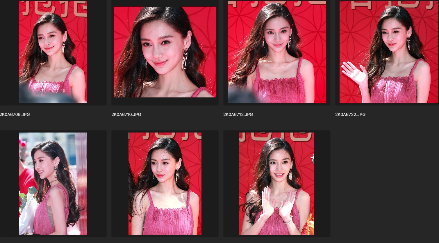baby某活动的现场照,这几张都是上半身的特写,分辨率和ppi都很足,拿来精修一下很是可以了。