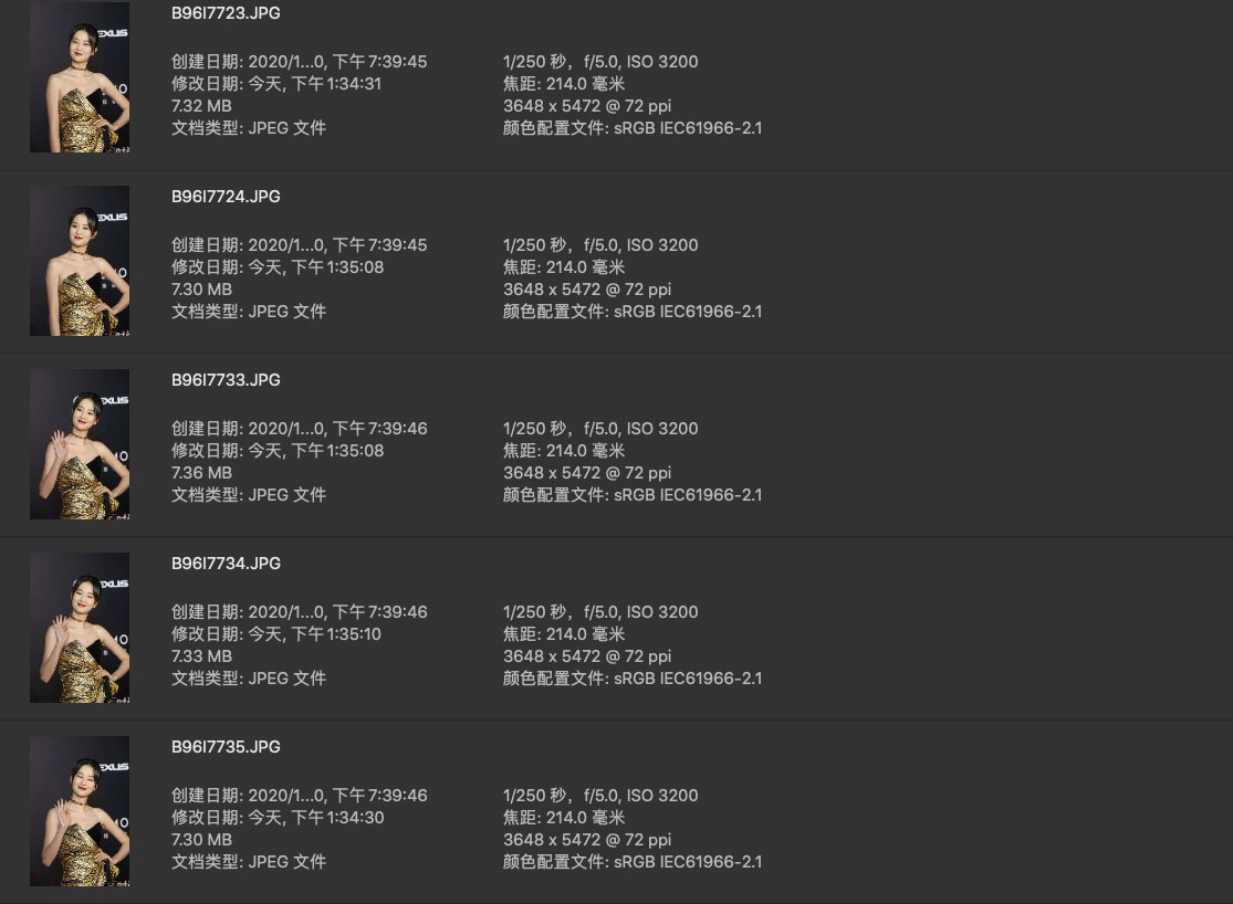 演员乔欣早期出席某活动的现场未修图照片,JPG格式,分辨率正常,感光度偏高,作为修图练习素材尚可。