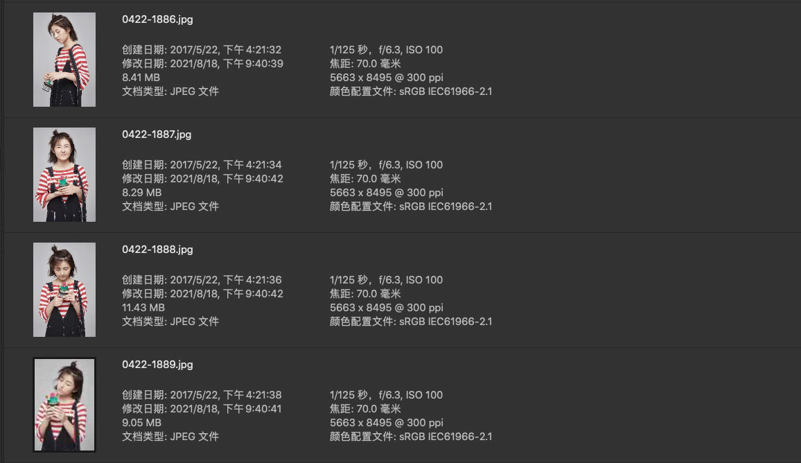 看片子就知道是专业摄影师拍摄的,时尚感和构图都很棒,片子数量偏多,缩略图比较紧凑,