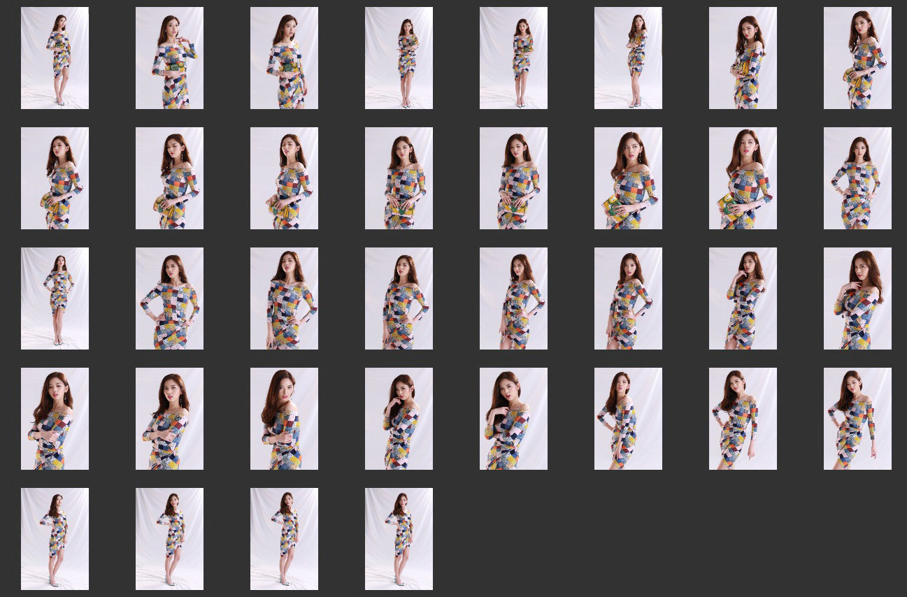 本组以白色柔光布为背景,服装清爽秀丽,构图以全身和半身为主。