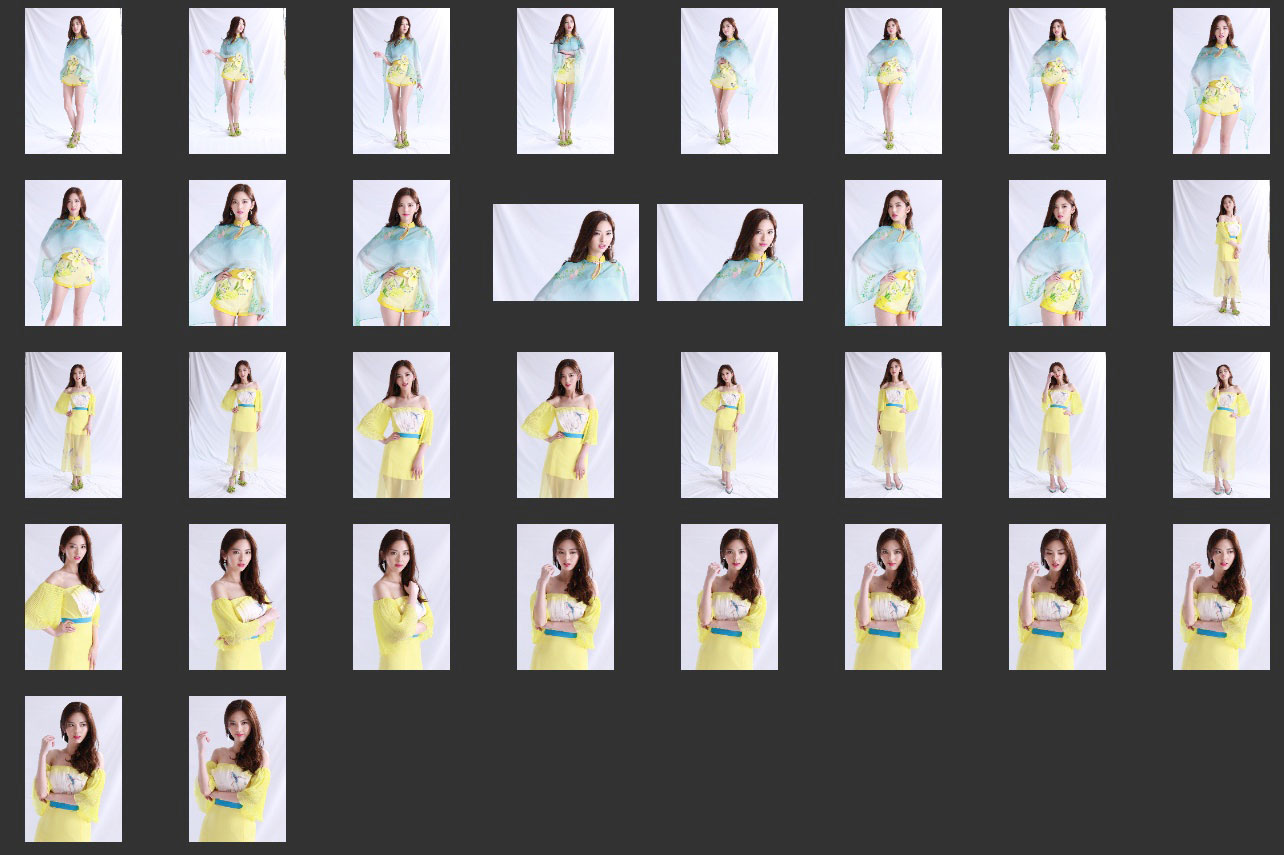 本组以白色柔光布为背景,服装清爽秀丽,构图以全身和半身为主。