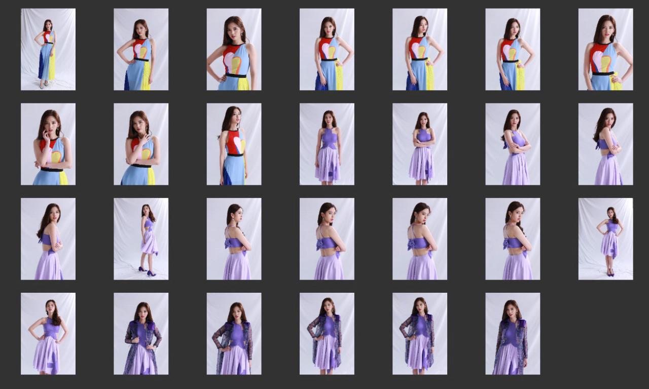 本组以白色柔光布为背景,服装清爽秀丽,构图以全身和半身为主。