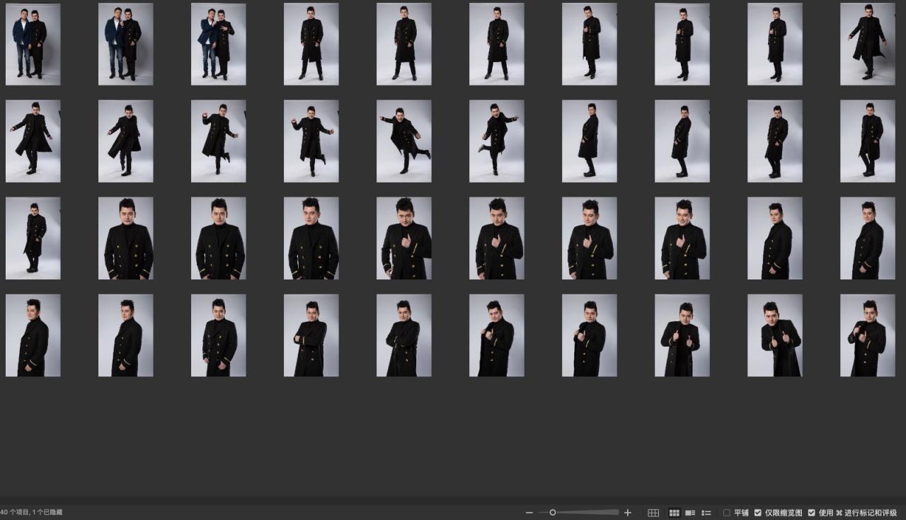 整体为灰色背景, 曝光略低,全身构图放大后细节不足。