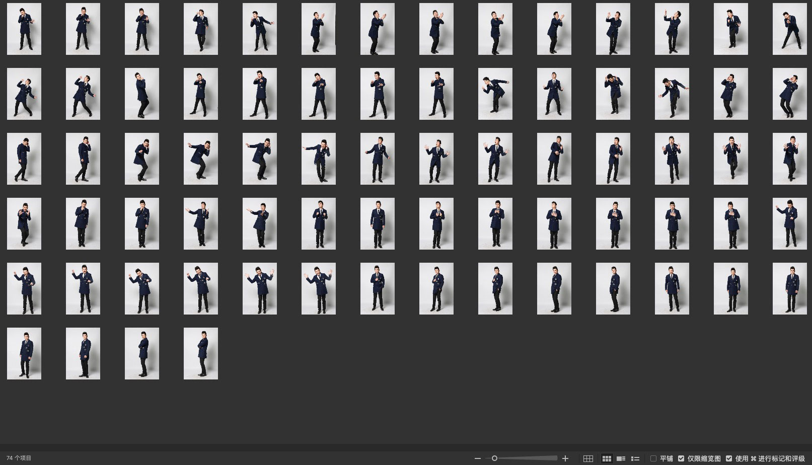 整体为灰色背景, 全部都是整身构图,肢体幅度变化多,放大后质感细节稍差。