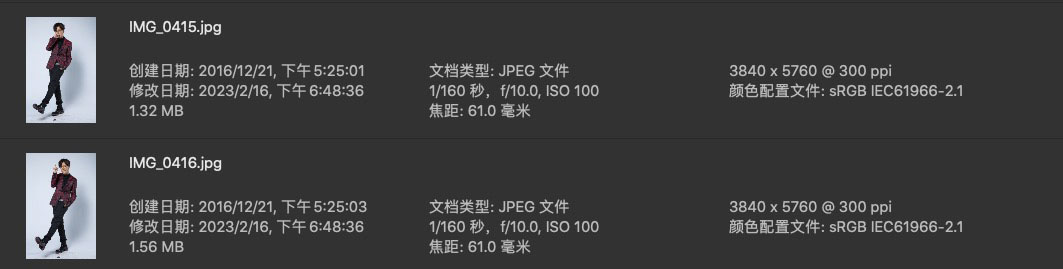 整体为灰色背景,图片有压缩,虽然分辨率和ppi 数据不错,但全身照放大后细节不足。