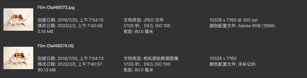 IIQ+JPG格式、感光度正常,分辨率 优秀,质感可以。