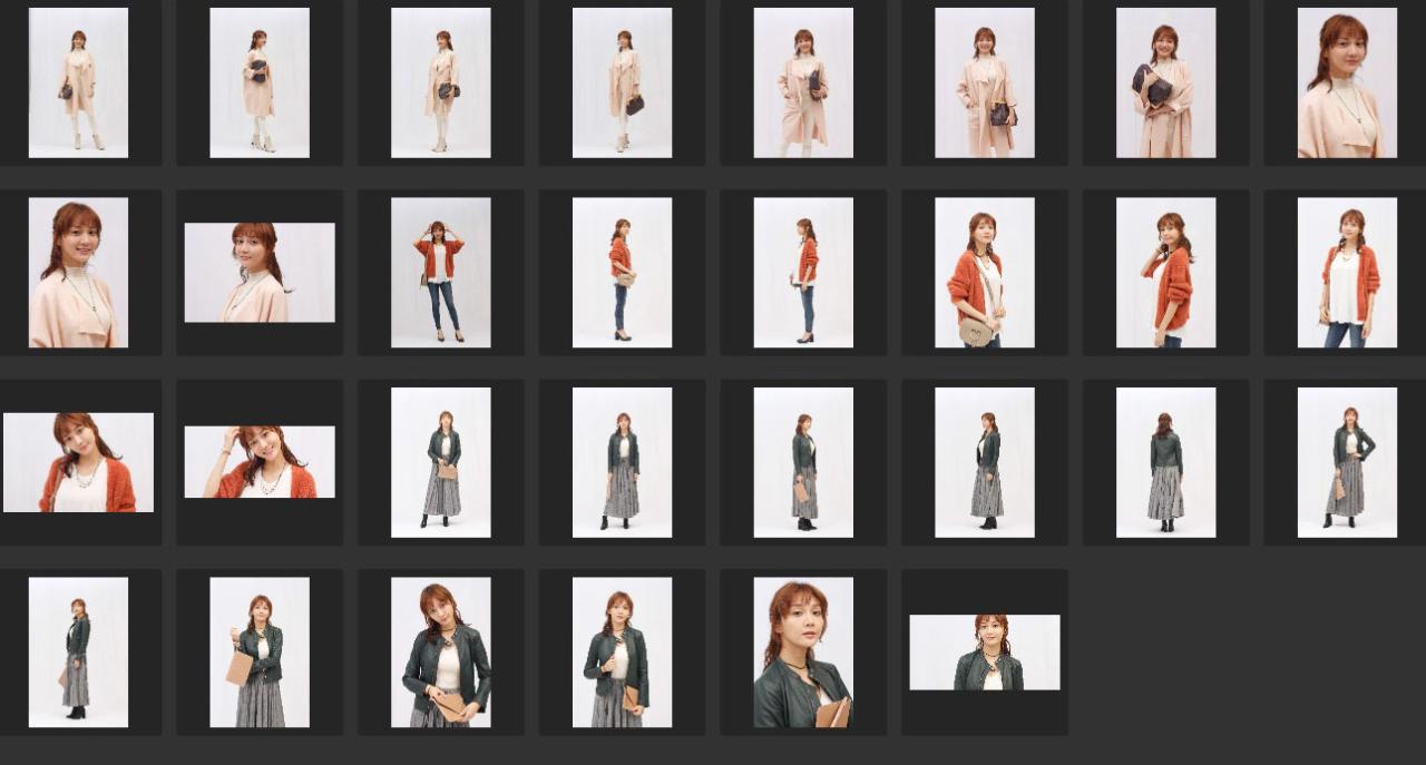 本套片子属于服装拍摄类型,三套衣服为一组,构图以全身和半身为主,全身放大后质感稍差。